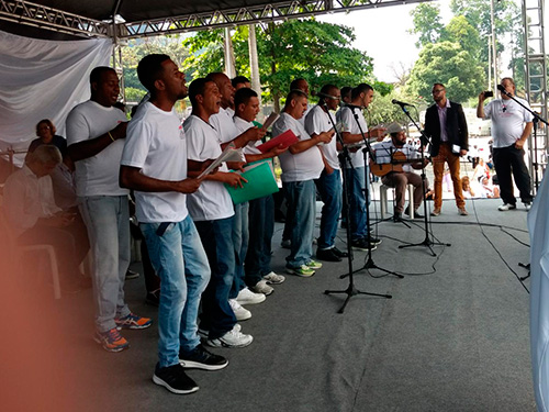 Os acolhidos cantaram o hino " a Paz" . A Fraternidade e a Superação da Violência.